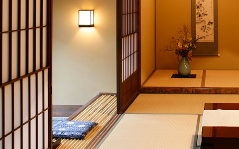 A 10 tatami-mat room, a 4.5 tatami-mat room for tea ceremony and “hiroen,”a broad veranda, with an indoor bath of koyamaki-wood.